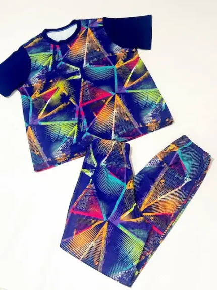 مشخصات: قد پیراهن ۵۸ عرض ۴۷ قد شلوار ۹۲ دور کمر با کشسانی تا ۹۰ دور ران ۲۸(با کشسانی تا ۳۳)