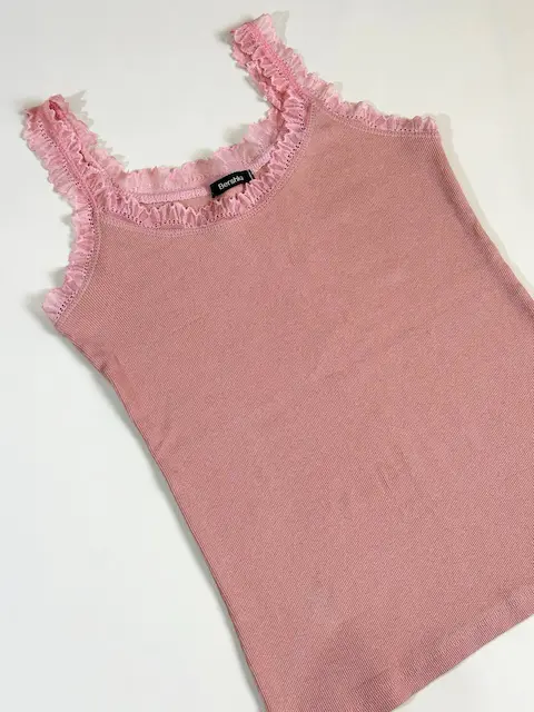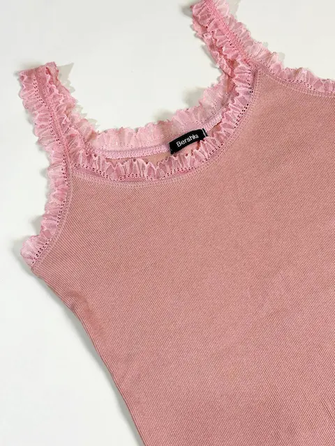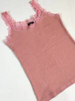 طراحی مینیمال با گیپور دور یقه و بند، حالت کشسان ملایم و تن‌خور ظریف و لوکس.