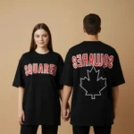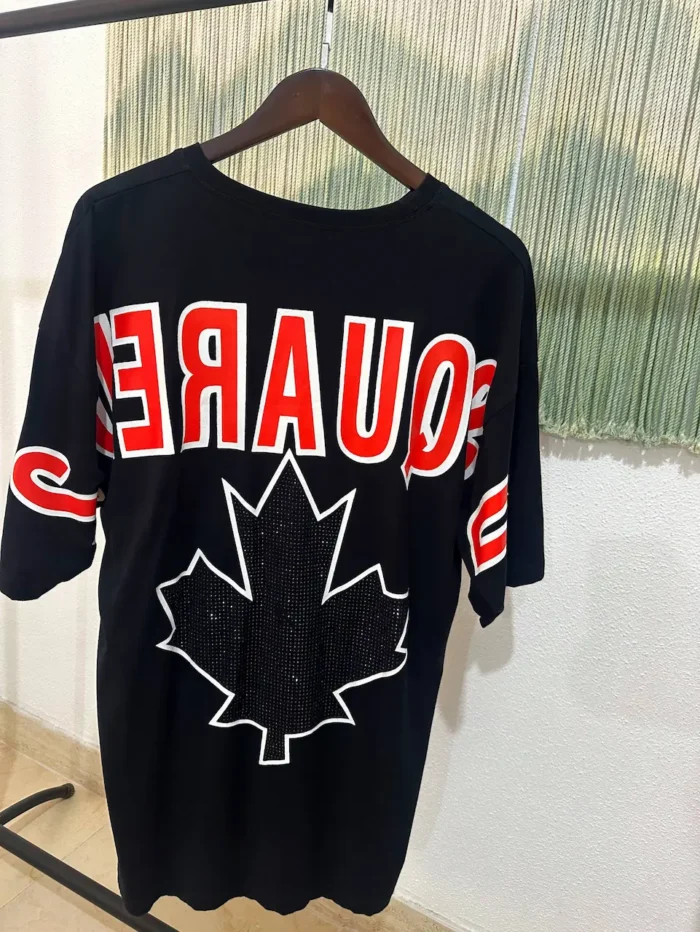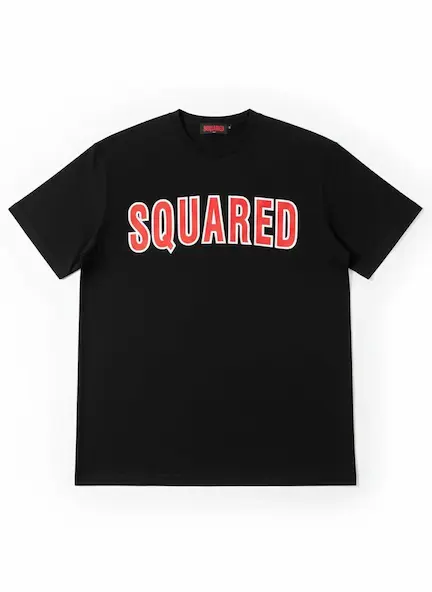این تیشرت لانگ یونی‌سِکس از جنس پنبه‌ای لطیف و سبک، با چاپ برجسته‌ی قرمز SQUARED روی زمینه‌ی مشکی طراحی شده تا همزمان راحتی و زیبایی را ارائه دهد.