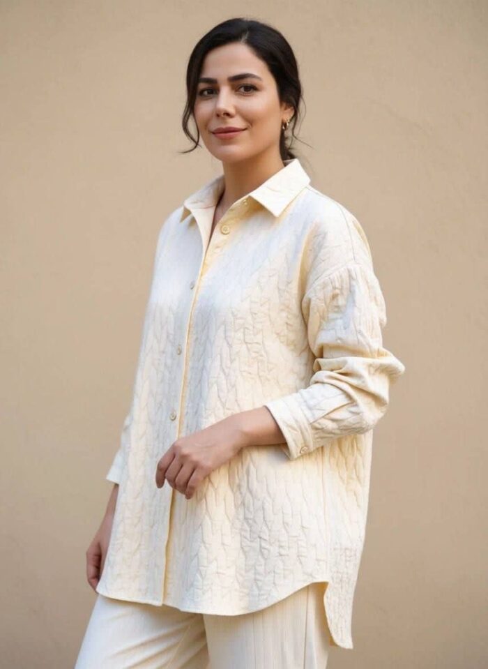شکت فریال با طراحی ساده و پارچه خاص خودش، انتخابی مینیمال و شیک برای روزهای خنک پاییزی است. بافت لطیف و سبک پارچه باعث میشود حس آزاد و راحتی در طول روز داشته باشید، در حالیکه فرم آزاد آن برای استایلهای روزمره یا نیمهرسمی کاملاً مناسب است.